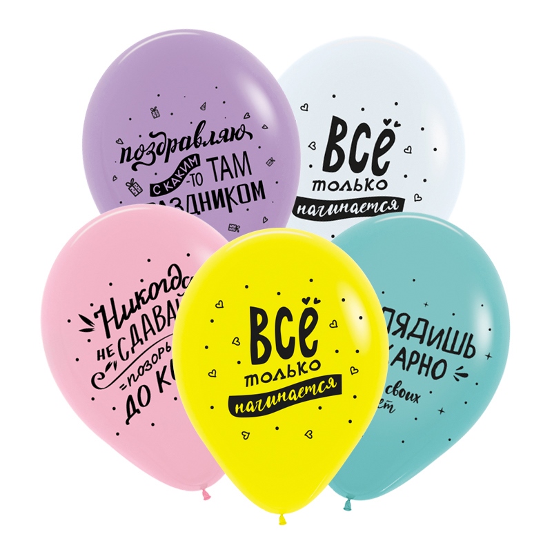 V 12 Поздравления забавные, Ассорти Пастель / 50 шт. / Латексный шар