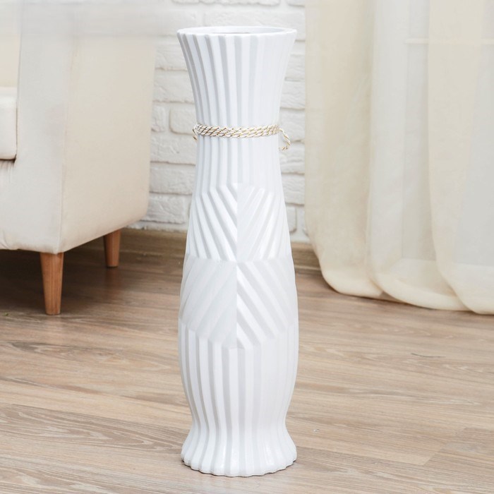Ваза керамика напольная "Данте" зигзаг со шнурком талия, 16х60 см, белый 4635464